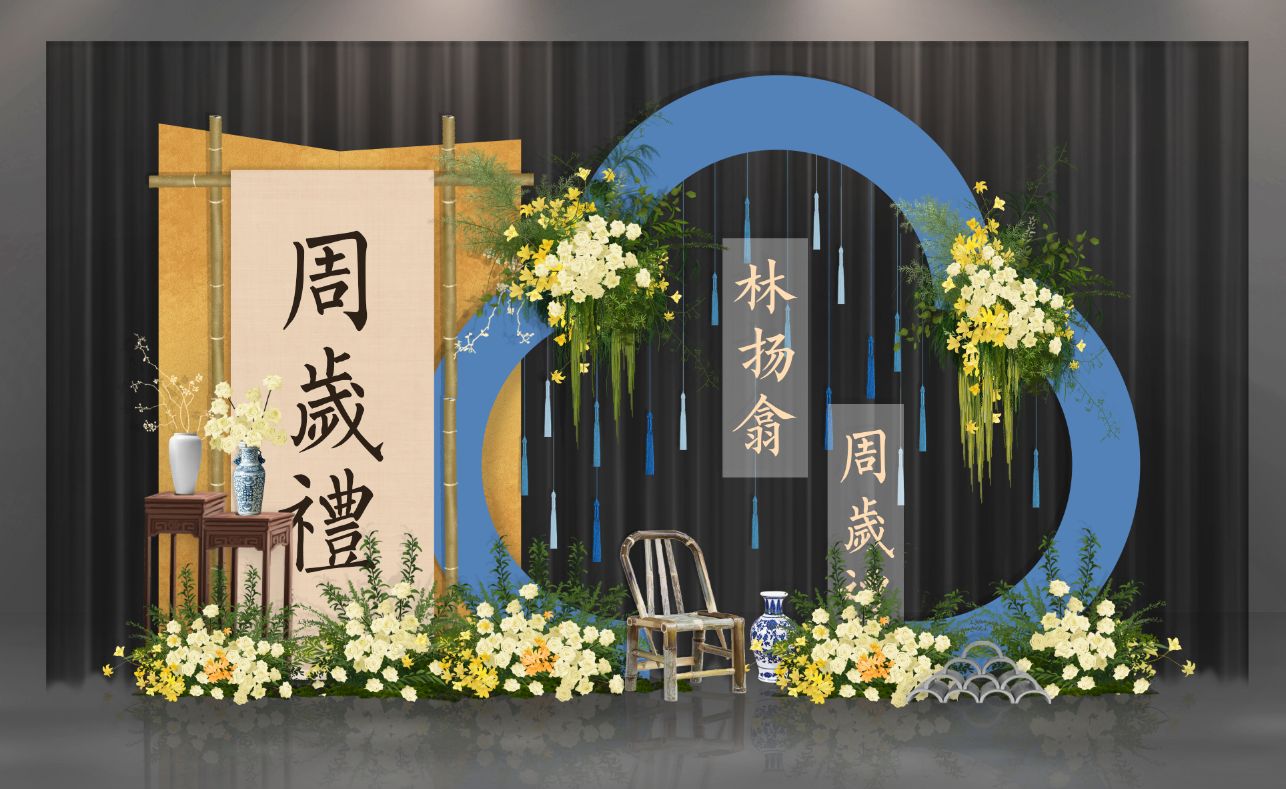 蓝色新中式宝宝宴