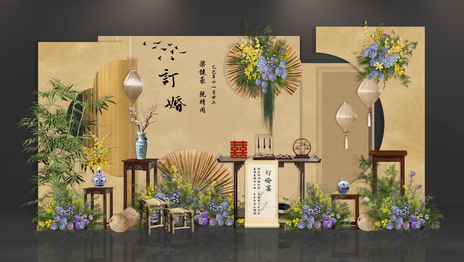复古金色新中式订婚宴