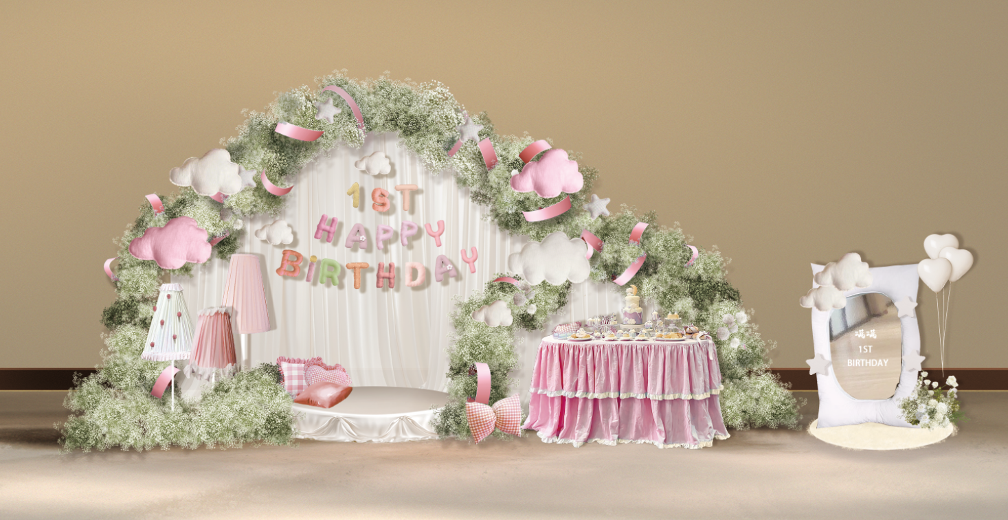 粉白色梦幻宝宝周岁宴